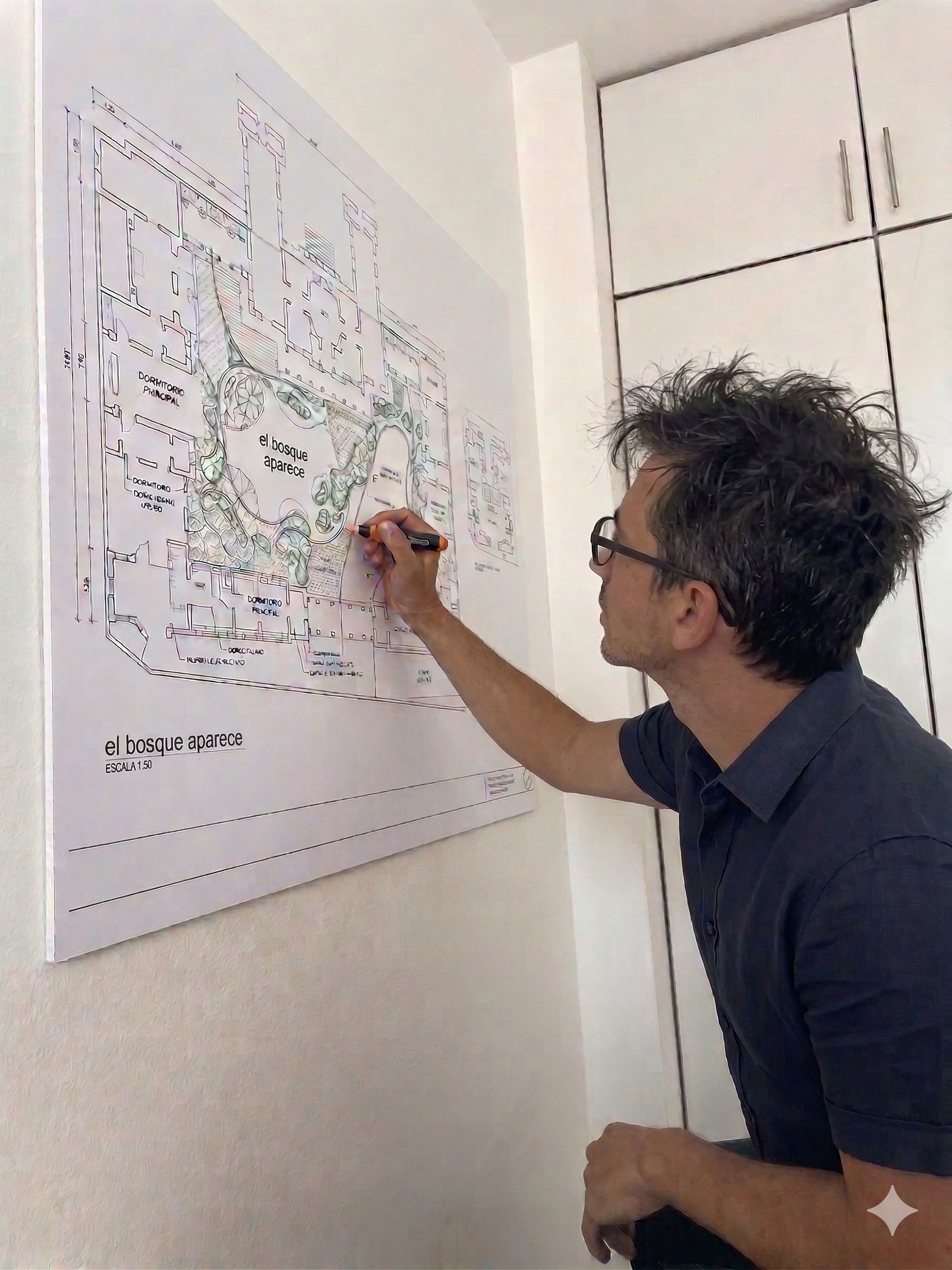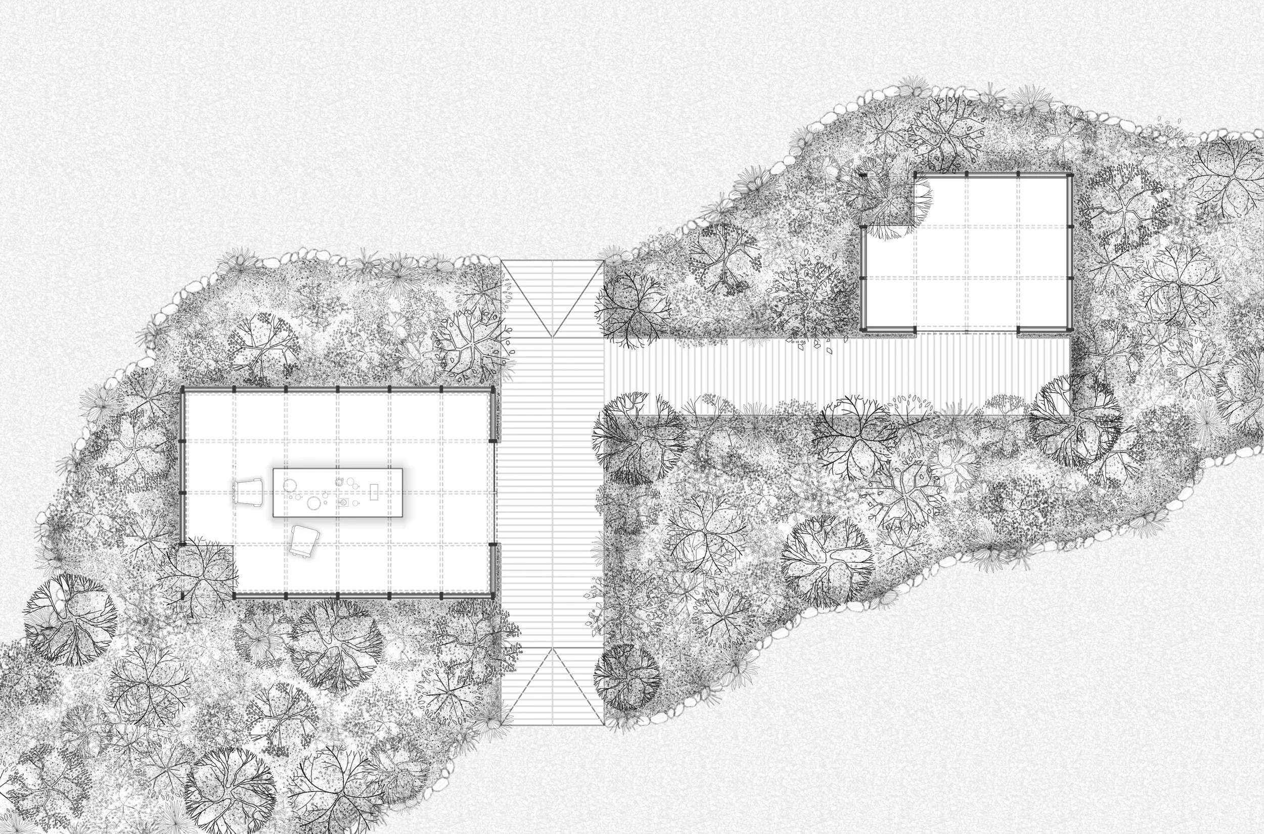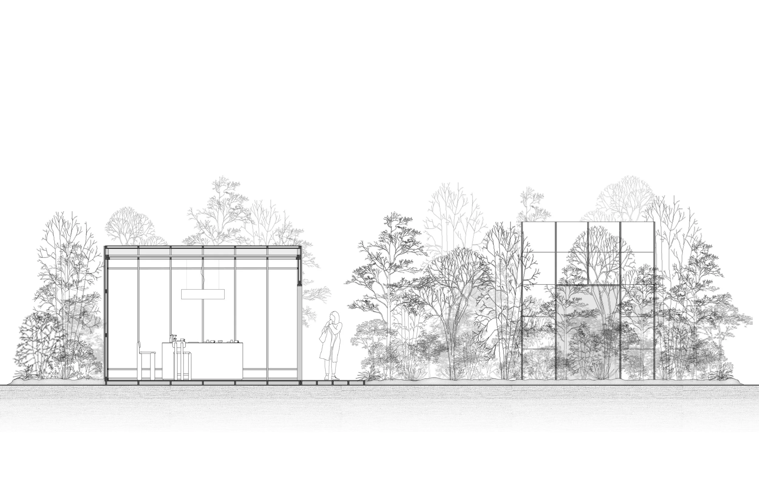 El concepto rector es el bosque adolescente: ese estadio de transición donde las especies compiten, se adaptan y negocian la luz. Un sistema vivo que no ha llegado a su forma definitiva y, por eso mismo, está en su momento de mayor energía. El espacio habitable como estado de devenir.